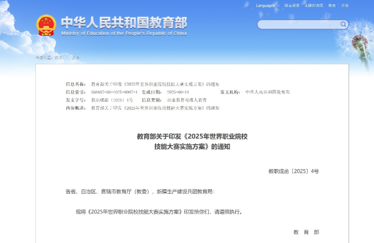 【环球网报道 记者 陈全 实习生 胡琳翊】记者近日从教育部获悉,为贯彻落实《教育强国建设规划纲要(2024—2035年)》,进一步提升世界职业院校技能大赛(以下简称“大赛”)内涵质量,发挥大赛对高技能人才培养的引领作用,扩大我国职业教育国际影响力,经大赛组织委员会(以下简称“大赛组委会”)研究决定,举办2025年世界职业院校技能大赛。